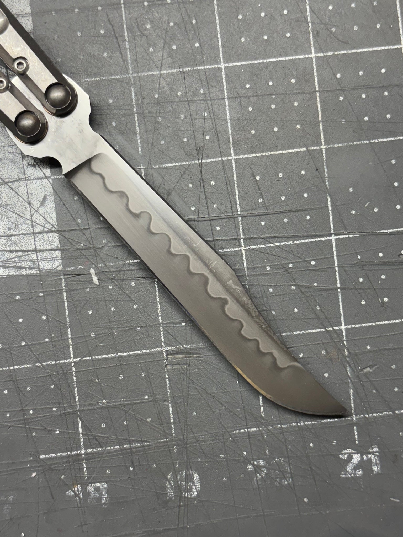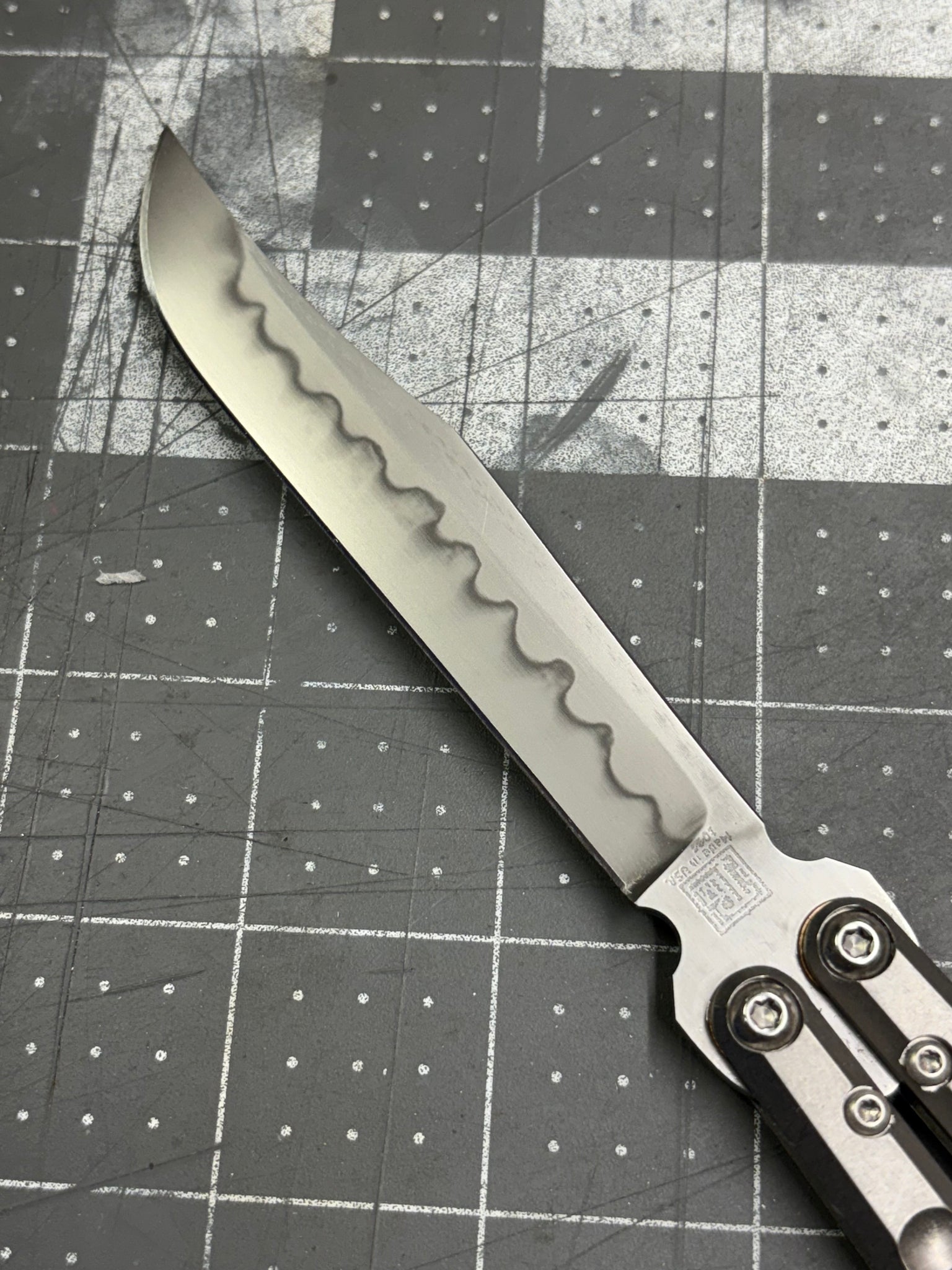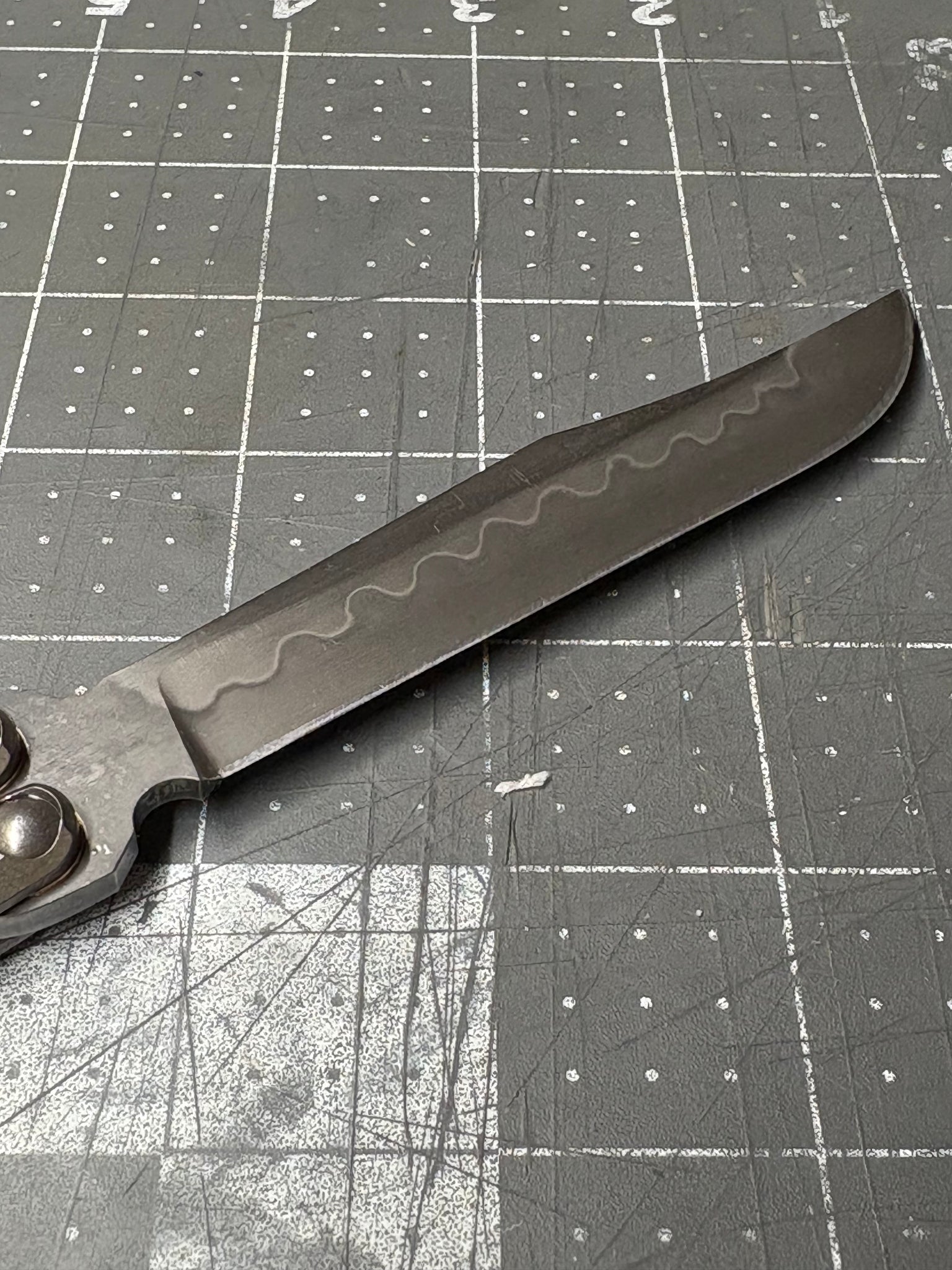 Hand Ground 1095 w/Hamon Blade, Stonewashed 6Al4V Titanium handles and spacers, SS bushings, zen pins