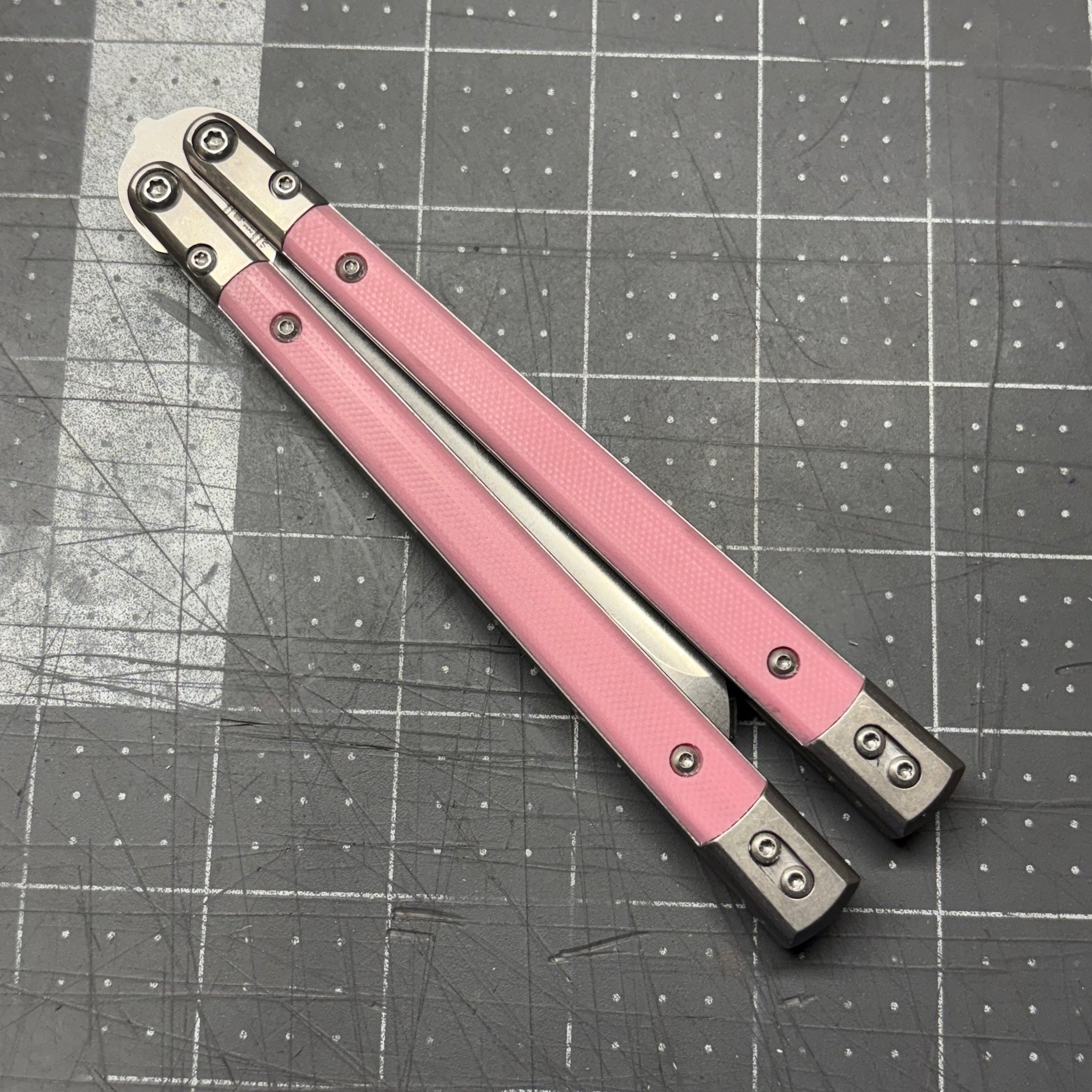 Revolution v2 Hand-ground D2 blade - Pink G10 inserts